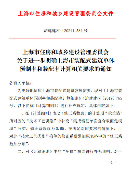 為更好地適應(yīng)上海市裝配式建筑發(fā)展需要,上海市住建委現(xiàn)對(duì)《上海市裝配式建筑單體預(yù)制率和裝配率計(jì)算細(xì)則》進(jìn)行補(bǔ)充規(guī)定(以下簡稱《計(jì)算細(xì)則》)。具體內(nèi)容,詳見↓